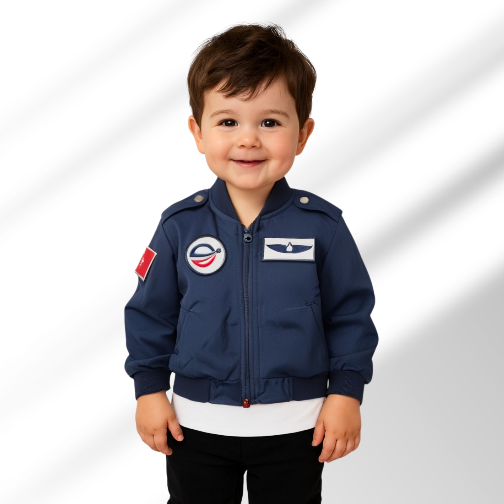 Küçük pilotlar için özel olarak tasarlanmış profesyonel görünümlü pilot montu! Cırt cırtlı patch sistemi sayesinde 3 adet dahil edilen arma çıkarılıp başka patchlerle değiştirilebilir. Ribana manşet ve bel detayları ile konforlu kullanım sunar.