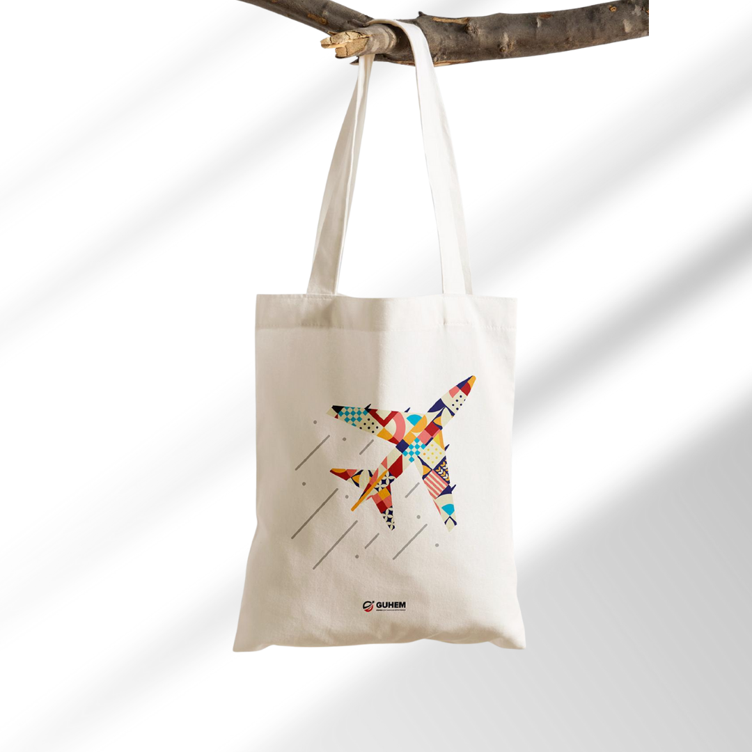 %100 pamuklu kumaştan üretilmiş, havacılık temalı özel tasarım bez çanta. Şık ve eğlenceli bir uçak motifiyle süslenmiş bu çanta, günlük kullanımda hem pratik hem çevre dostu. GUHEM ile havacılık tutkusunu her yere taşıyın!