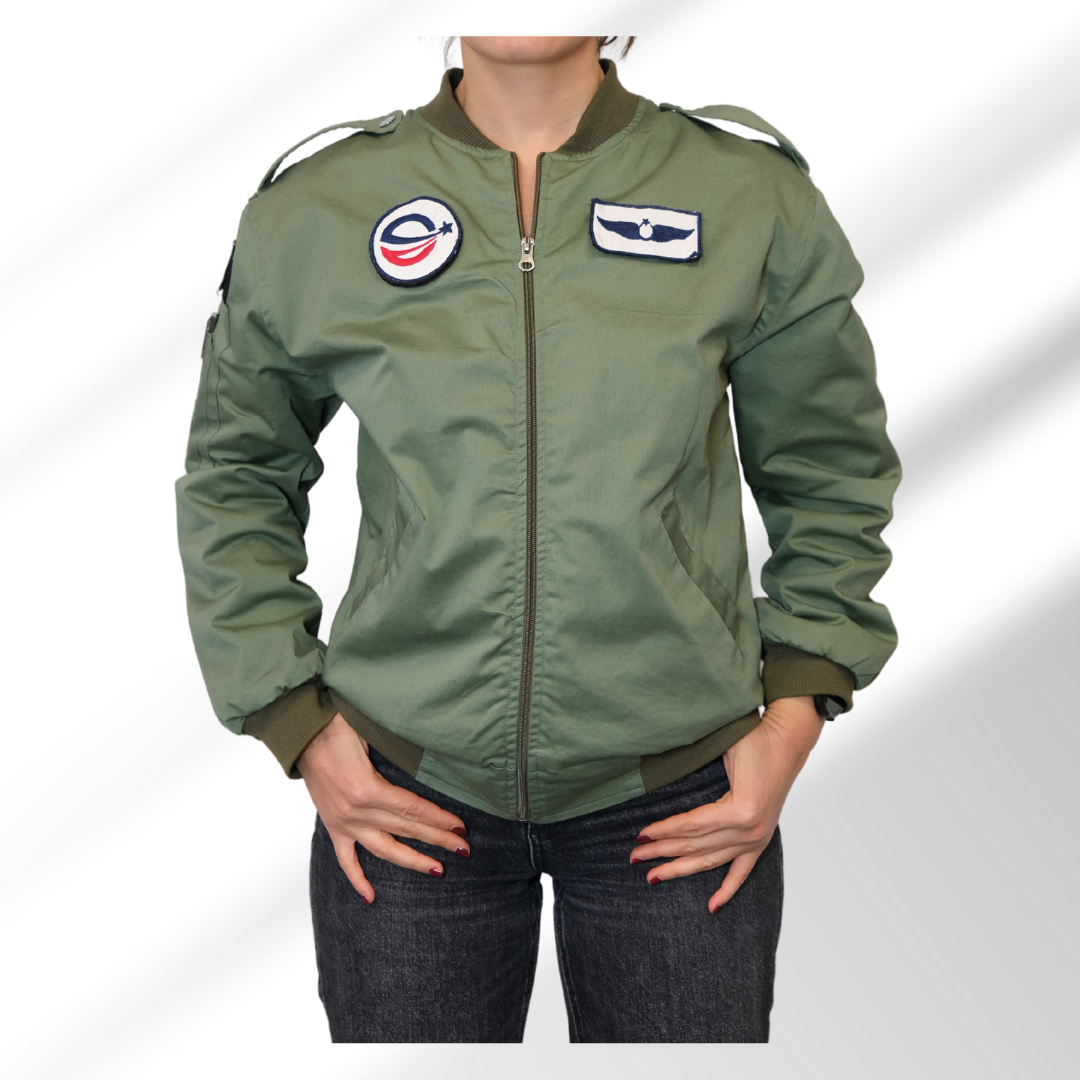 Havacılık tutkunları için profesyonel görünümlü pilot montu! Yeşil bomber ceket tarzındaki bu özel tasarım, cırt cırtlı patch sistemi sayesinde kişiselleştirilebilir. Ribana detayları ve konforlu kesimiyle hem şık hem pratik.